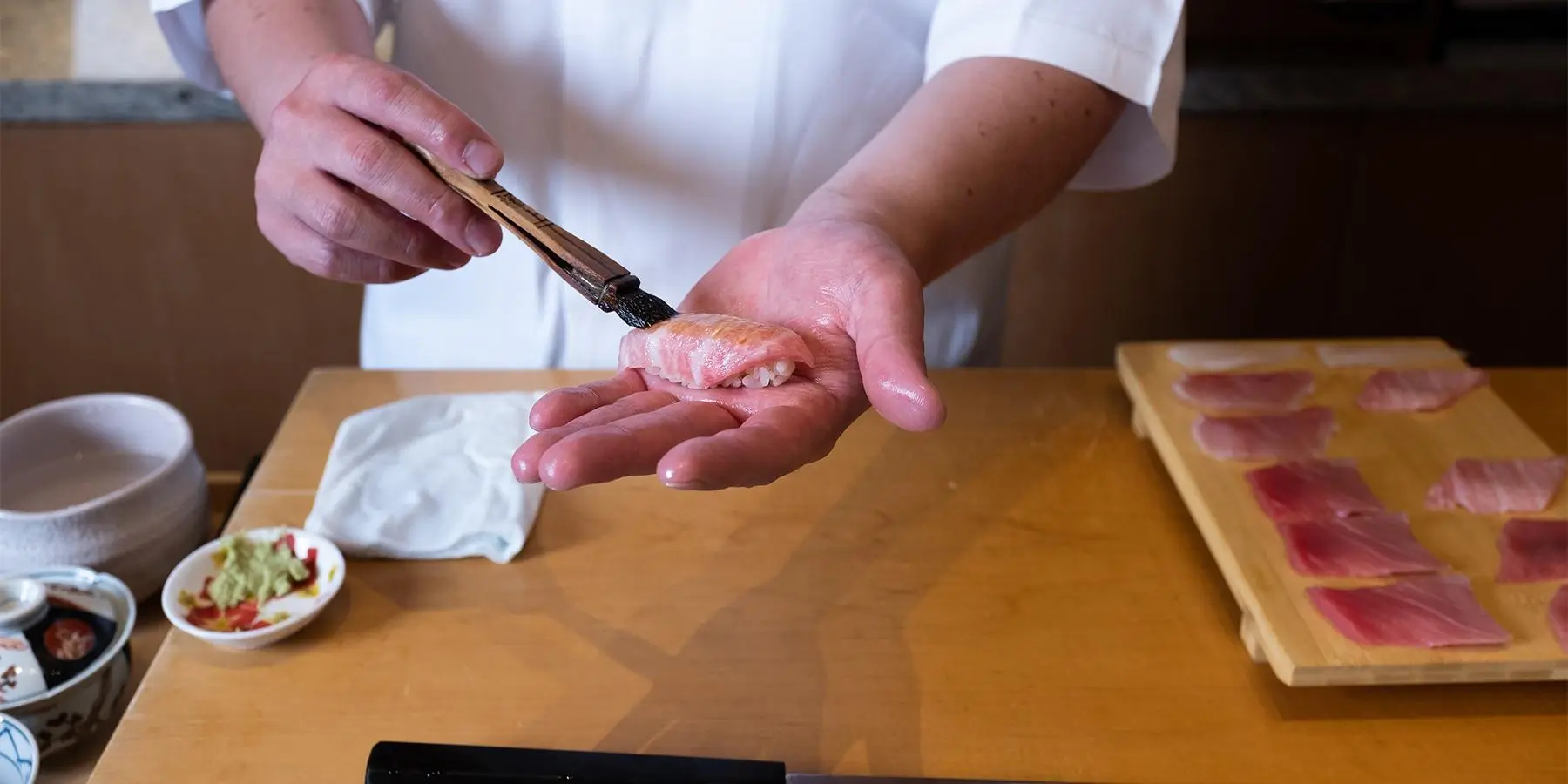 大将は、お客の目の前で丹念に握りを作る芸術的な方法で、この唯一無二の料理人による演劇的な料理パフォーマンスのようなもので、常にお客を喜ばせてきた。