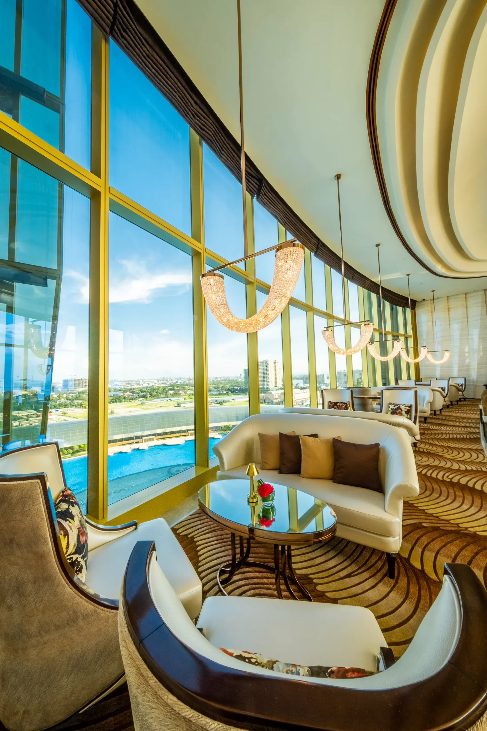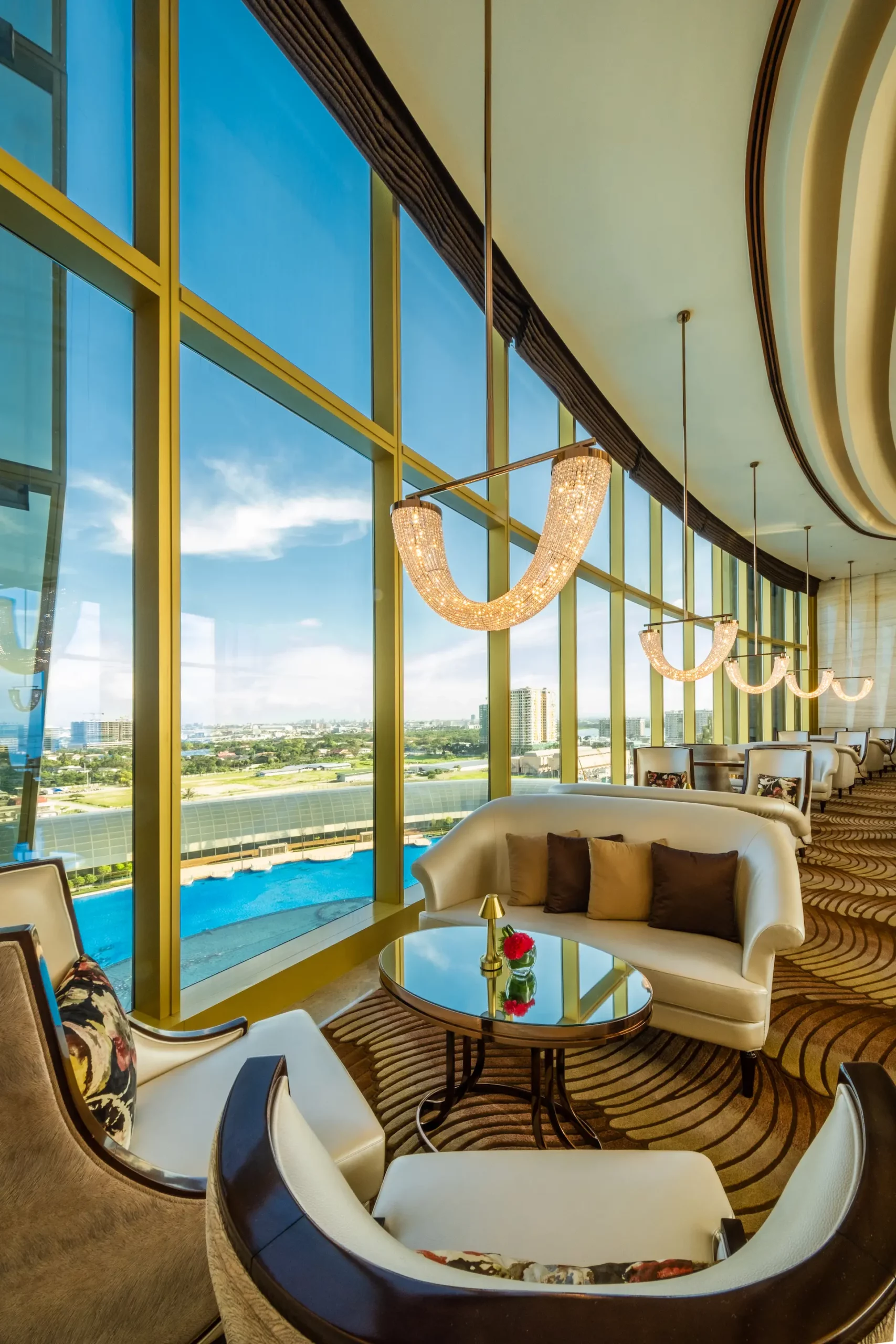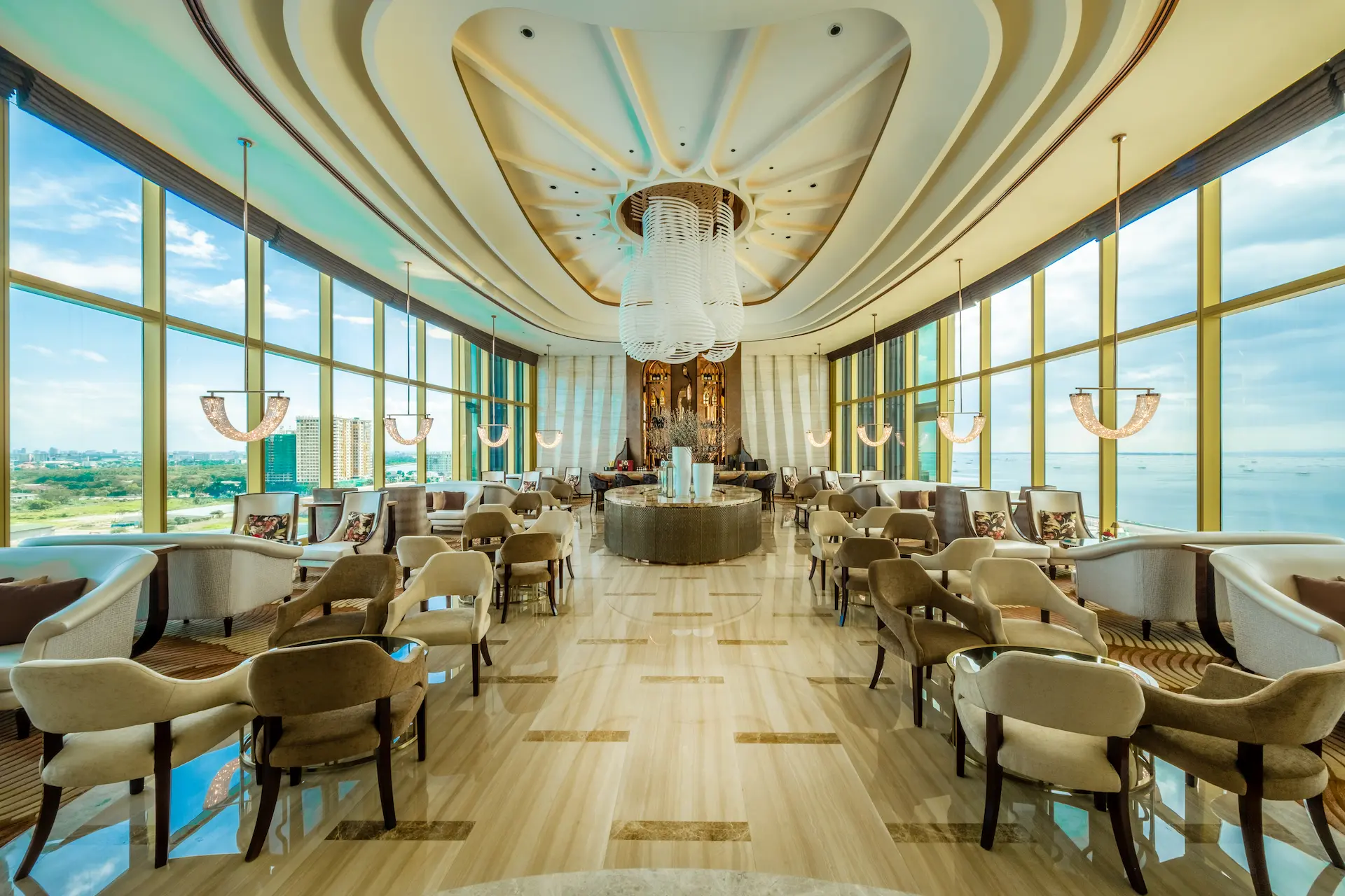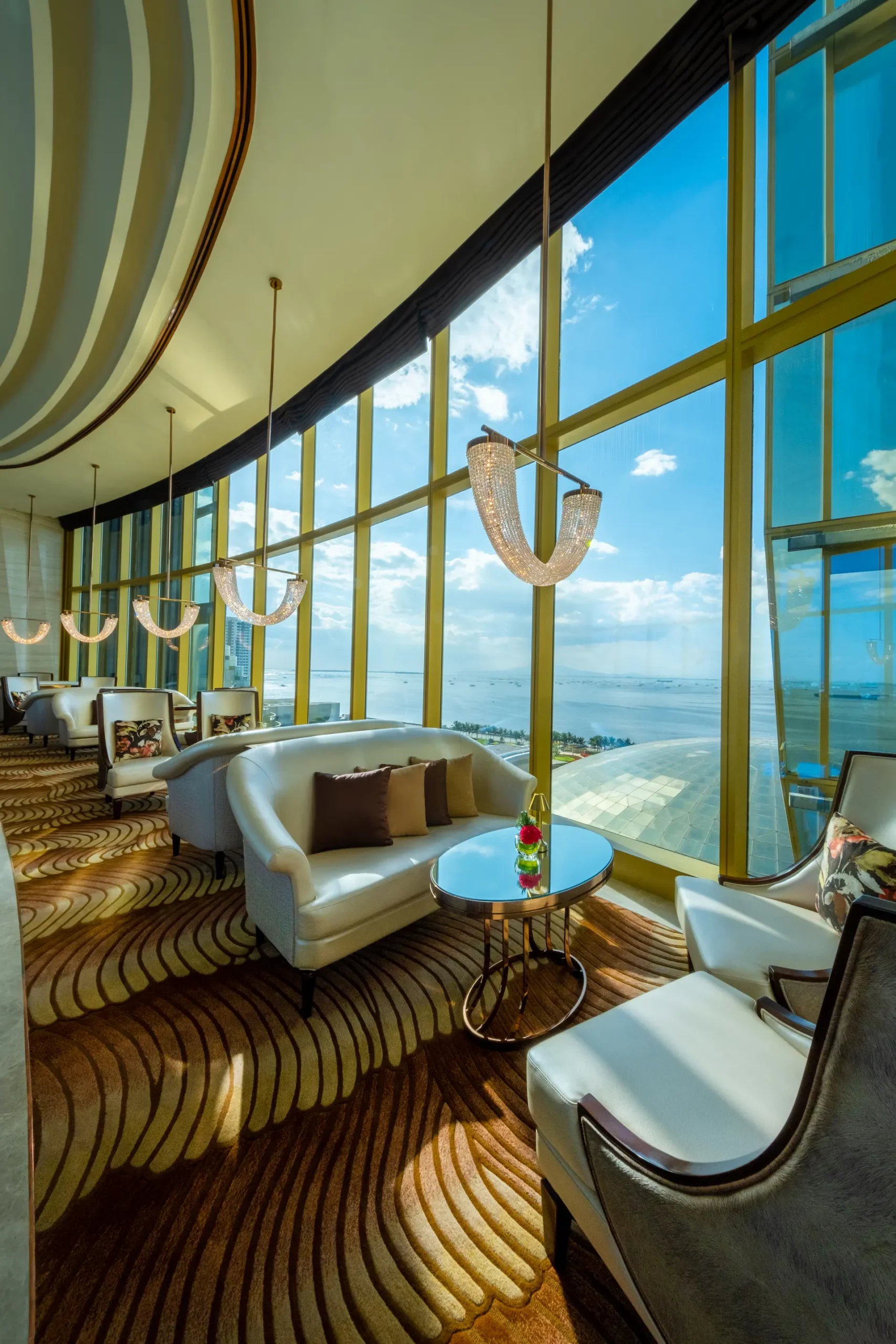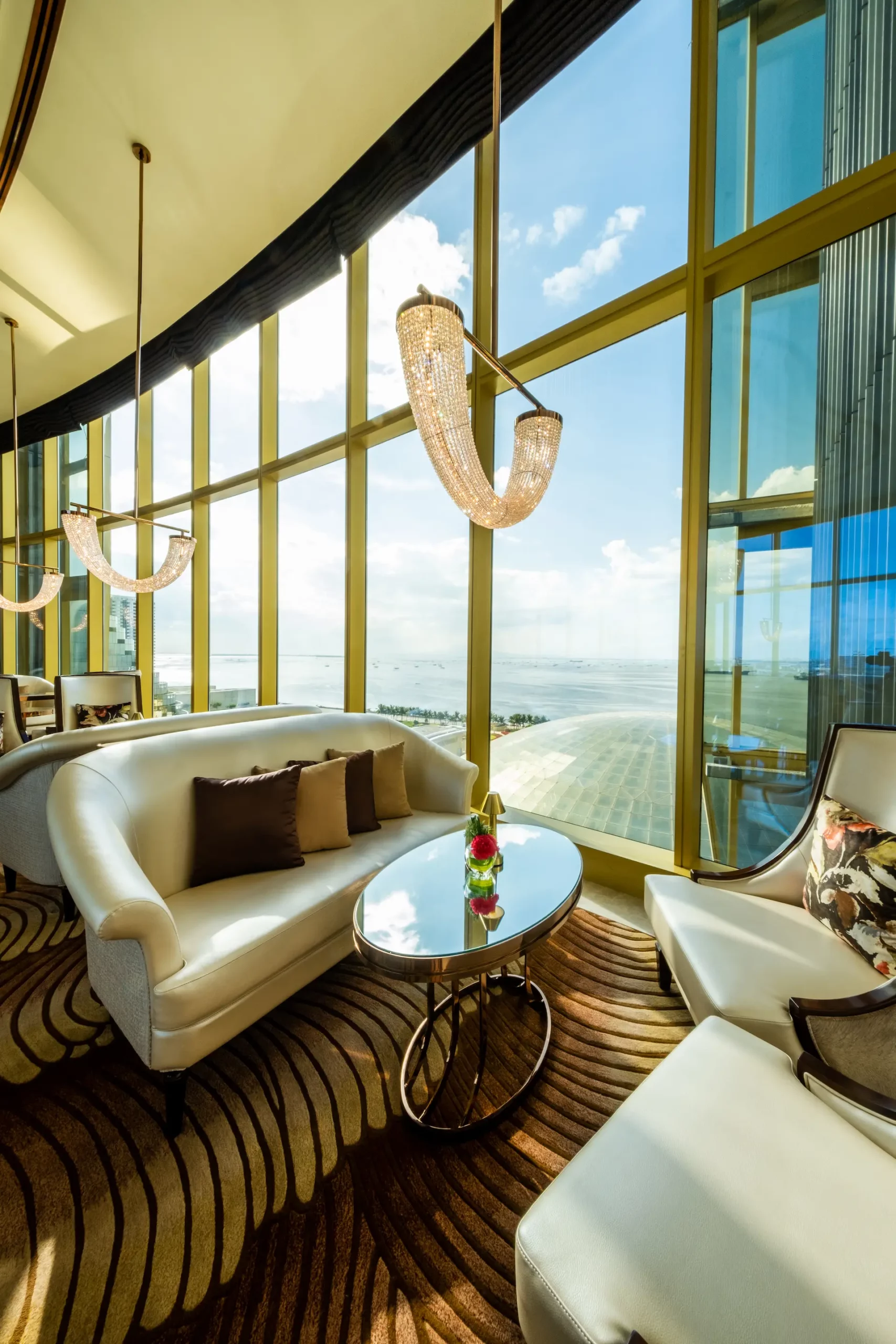 チェアマンズラウンジは、舌の肥えた人だけが楽しめる贅沢な空間で、The Fountain とマニラ湾の壮大な眺望、厳選されたバースナックや厳選されたドリンクリストが楽しめる。