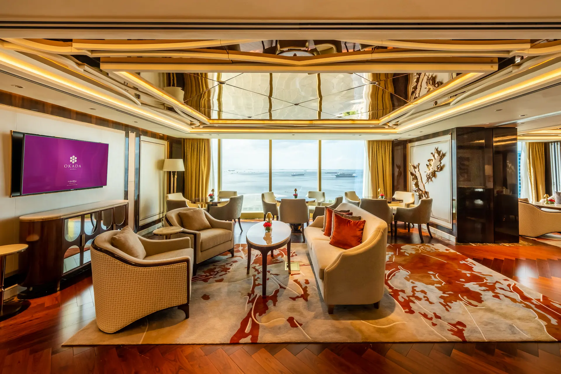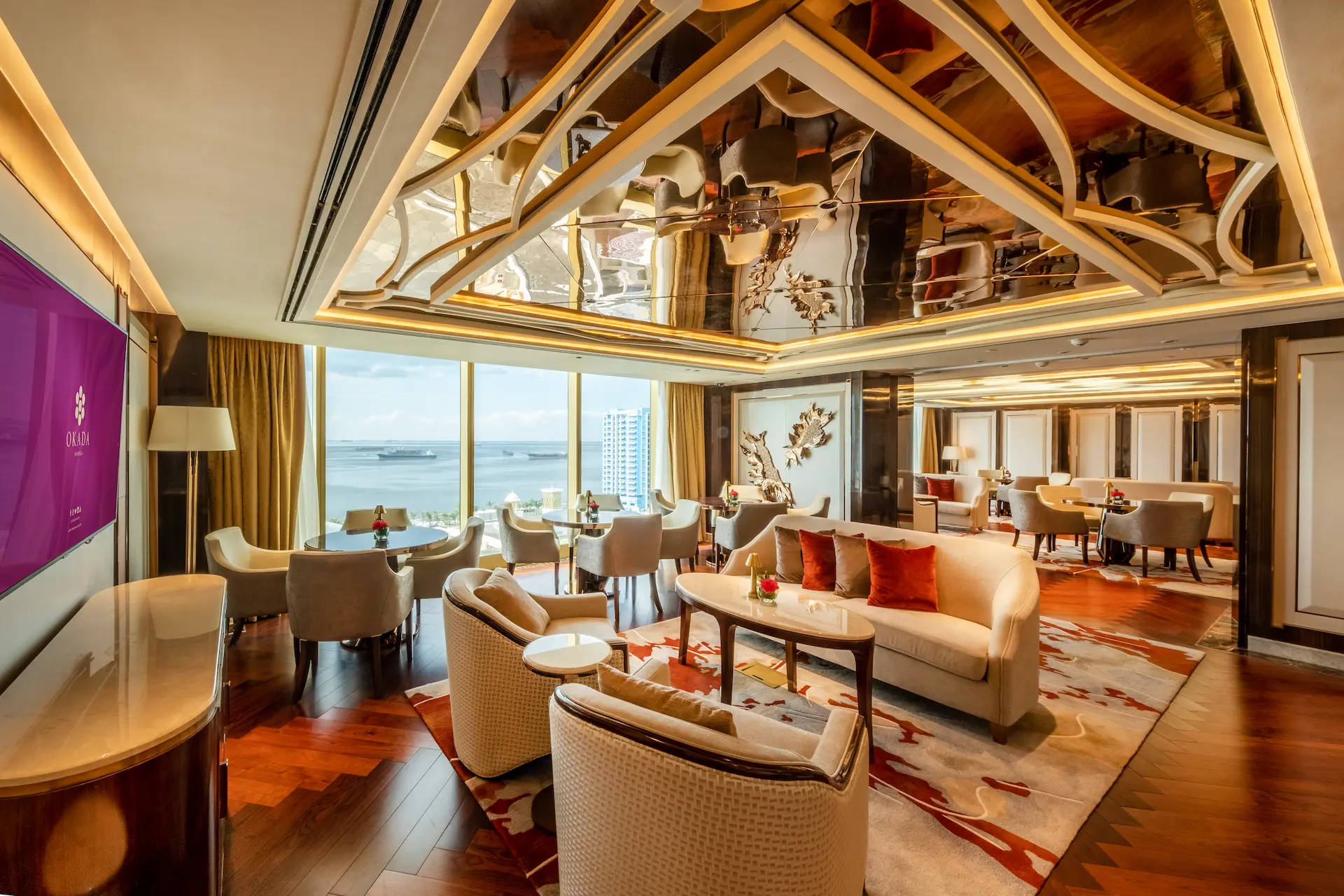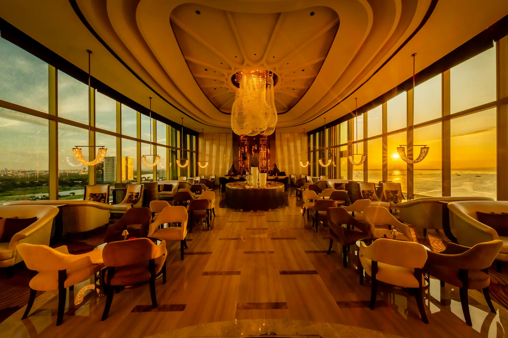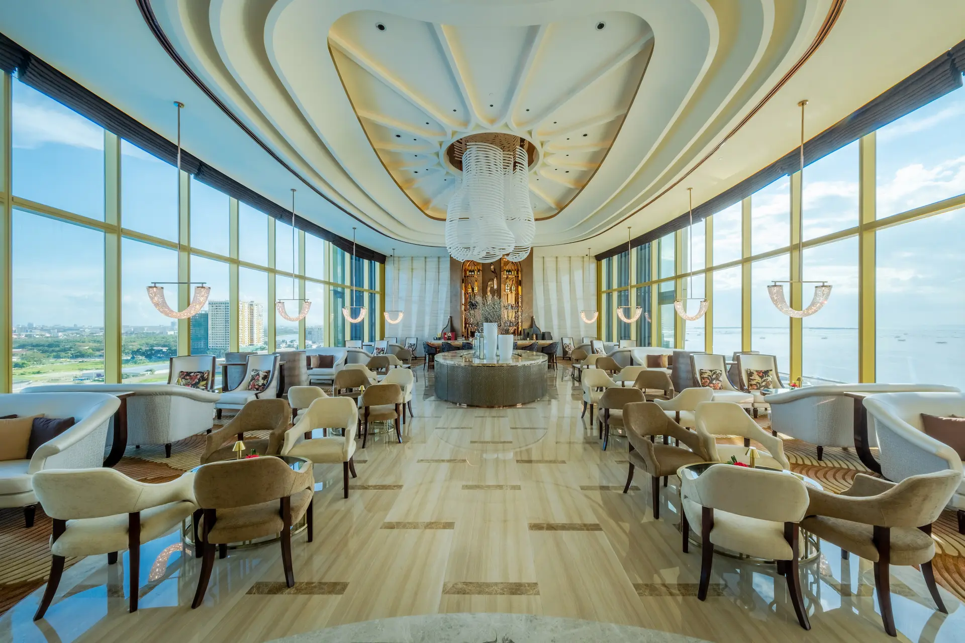チェアマンズラウンジは、舌の肥えた人だけが楽しめる贅沢な空間で、The Fountain とマニラ湾の壮大な眺望、厳選されたバースナックや厳選されたドリンクリストが楽しめる。