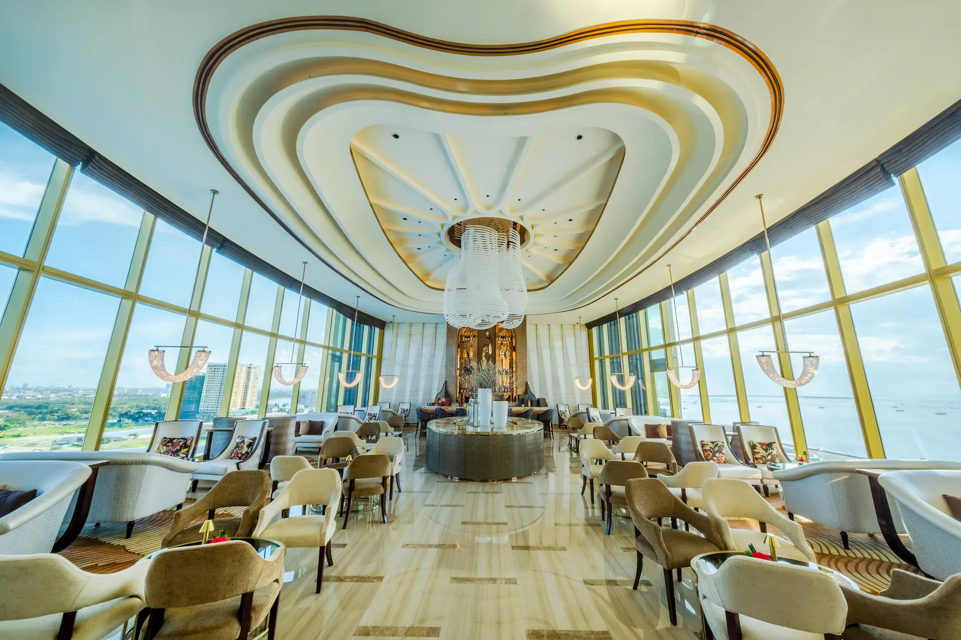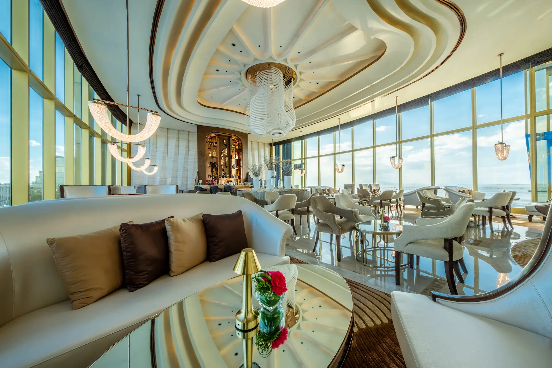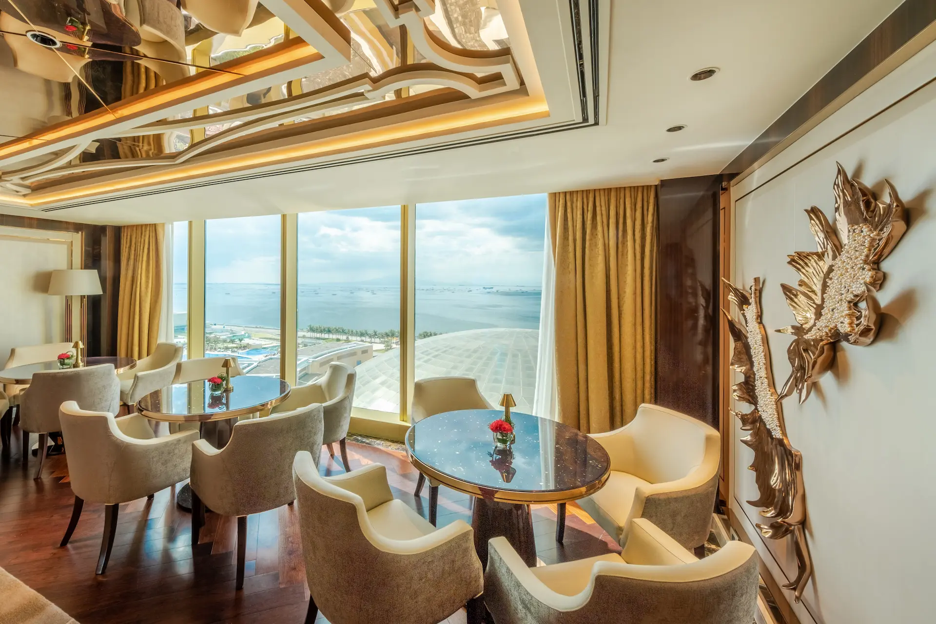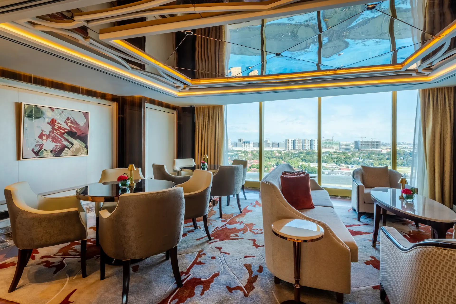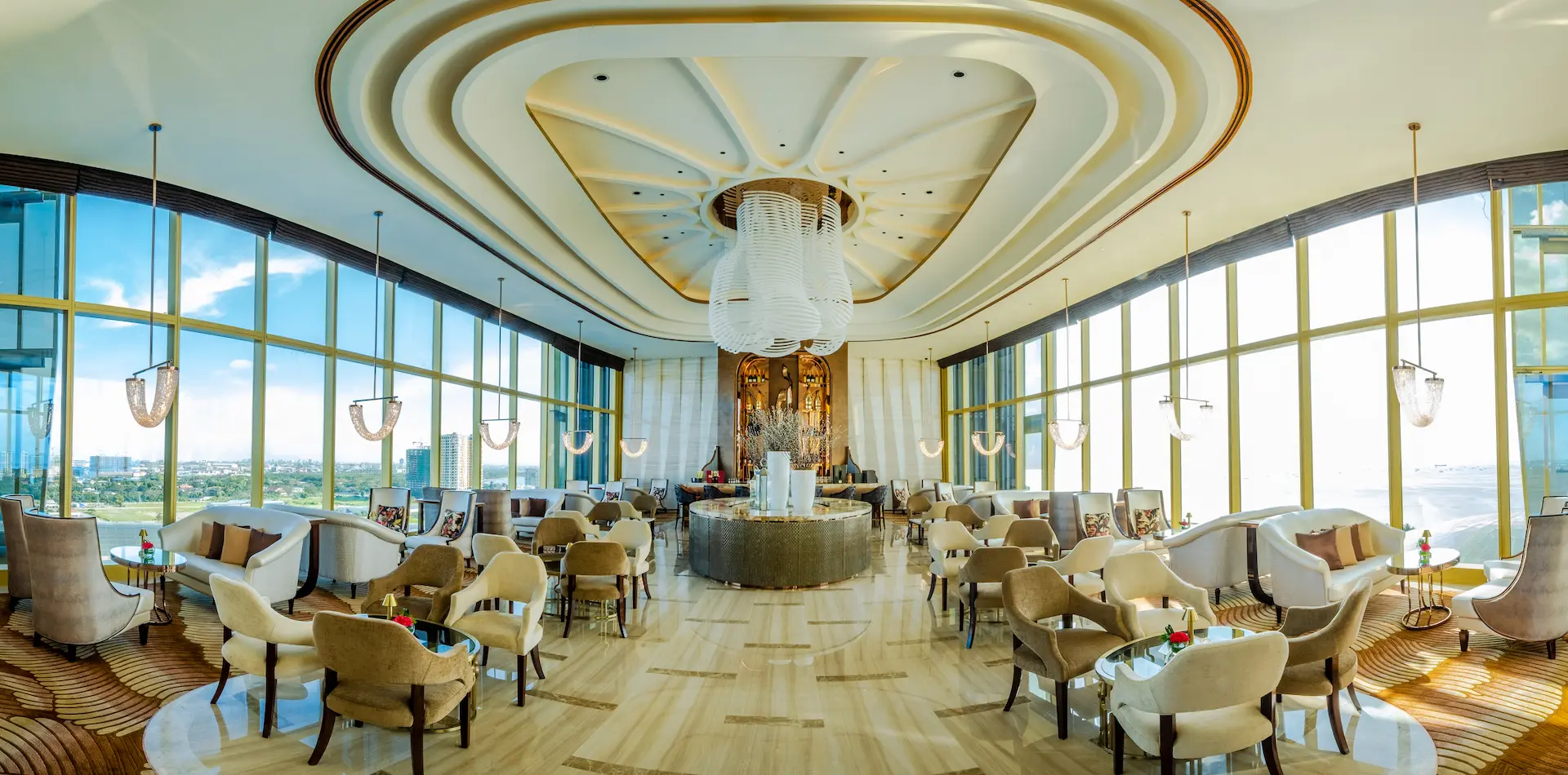 チェアマンズラウンジは、舌の肥えた人だけが楽しめる贅沢な空間で、The Fountain とマニラ湾の壮大な眺望、厳選されたバースナックや厳選されたドリンクリストが楽しめる。