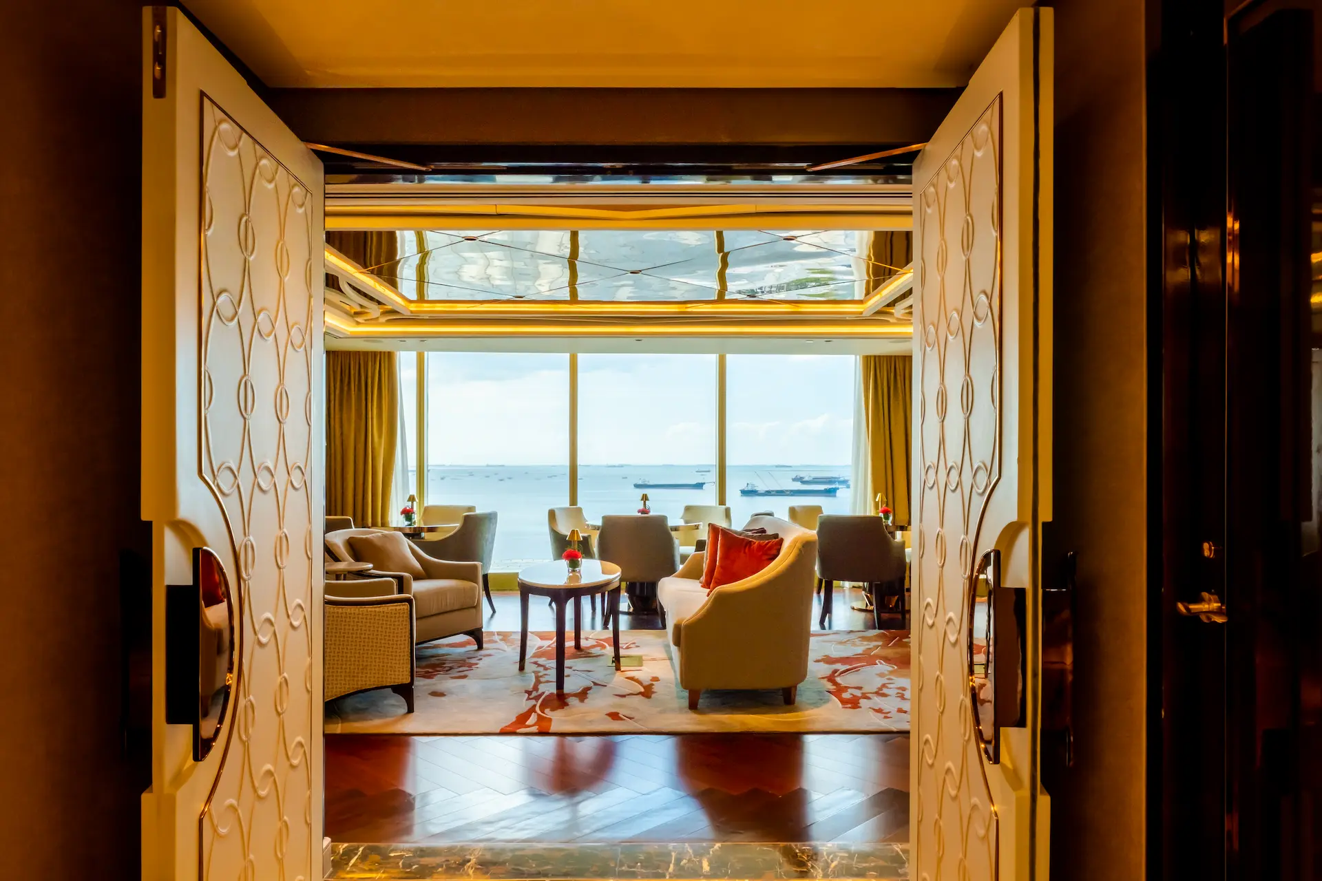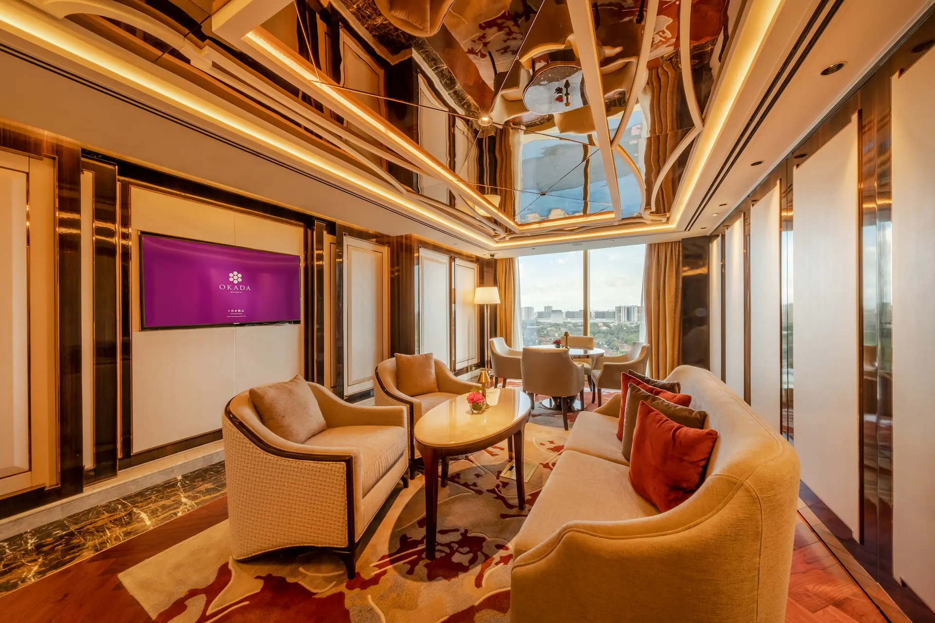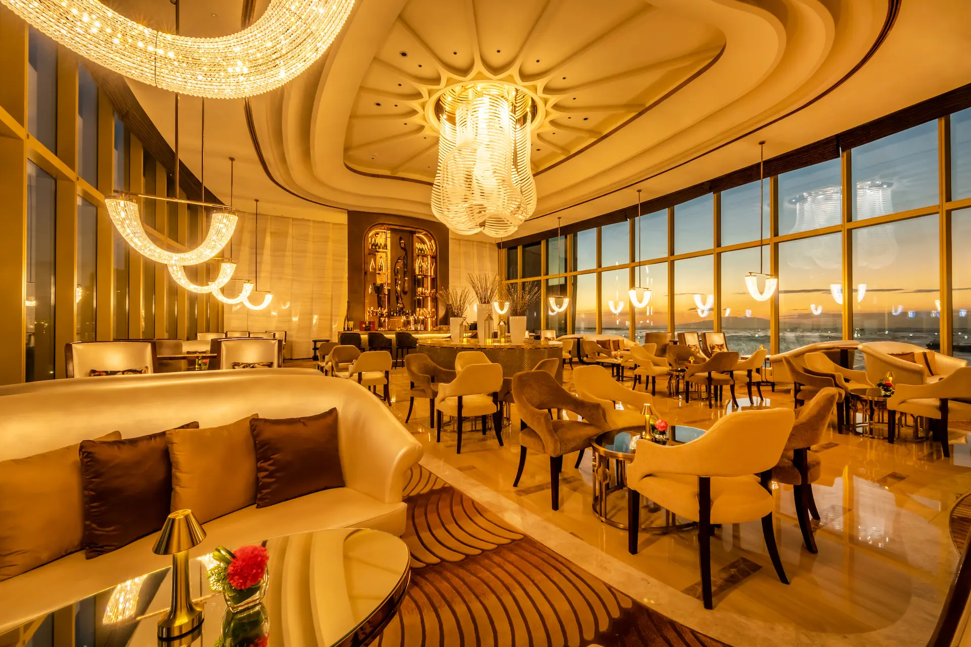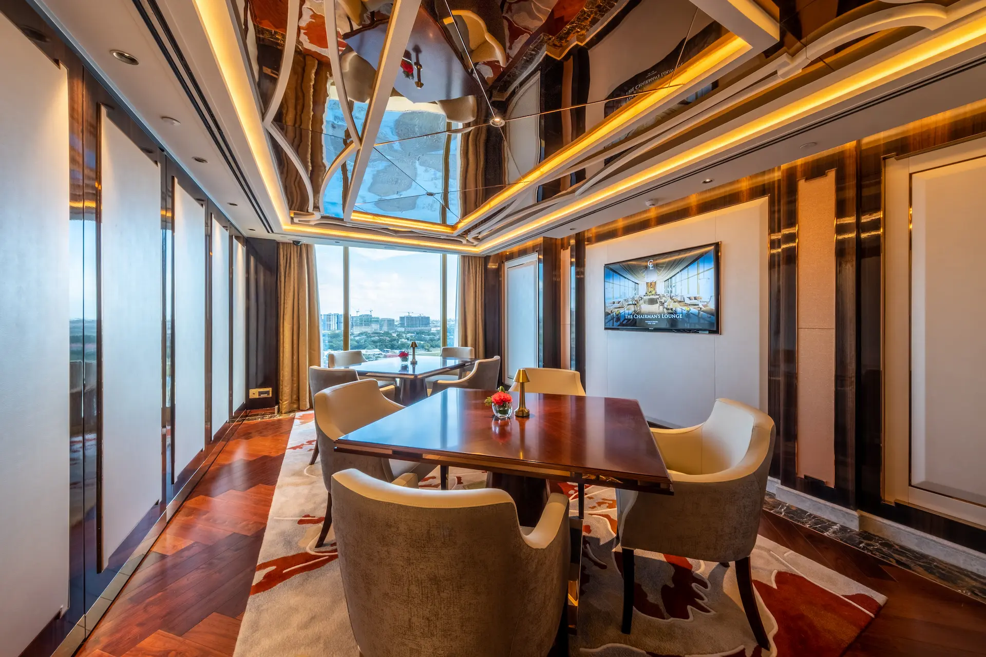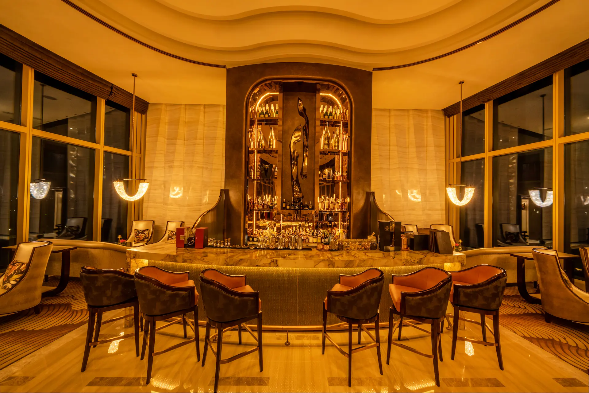 チェアマンズラウンジは、舌の肥えた人だけが楽しめる贅沢な空間で、The Fountain とマニラ湾の壮大な眺望、厳選されたバースナックや厳選されたドリンクリストが楽しめる。