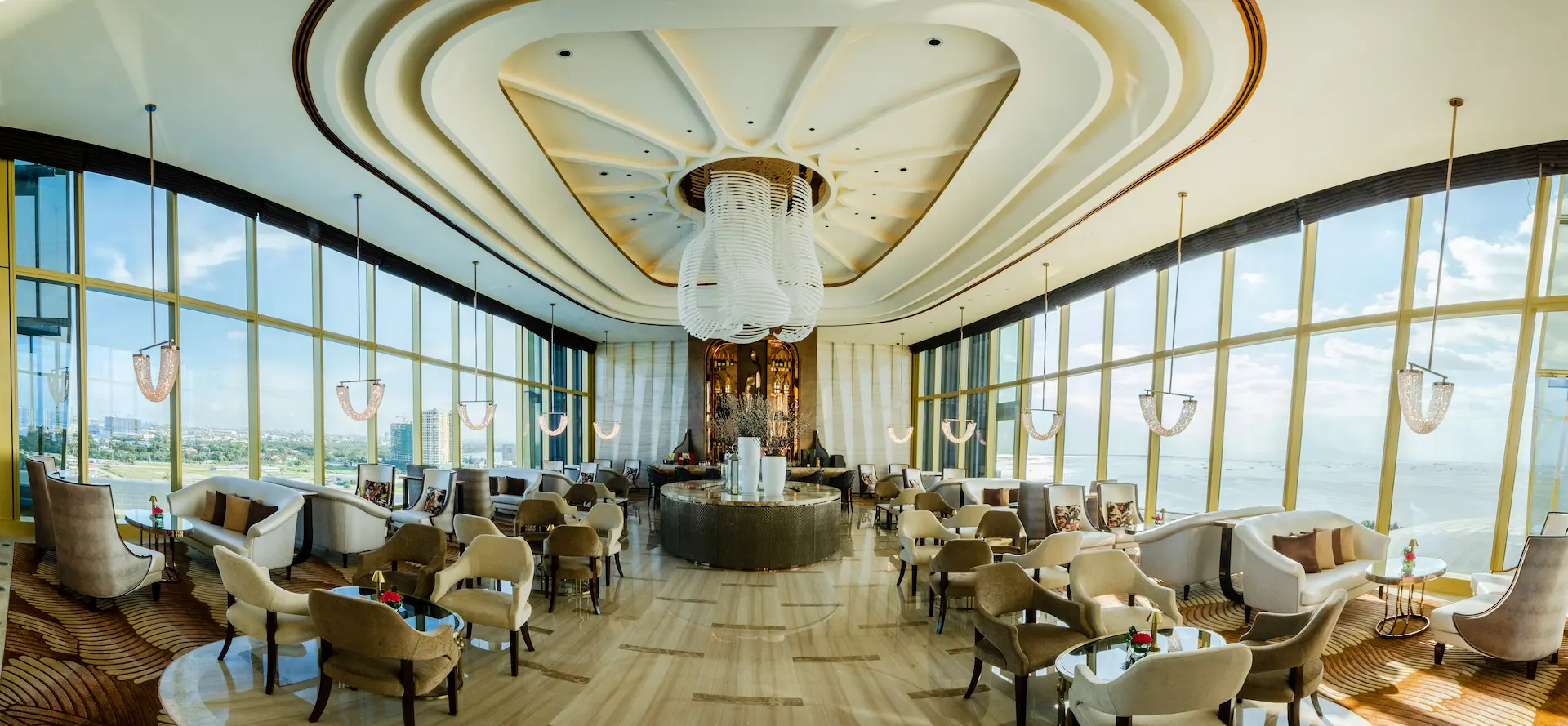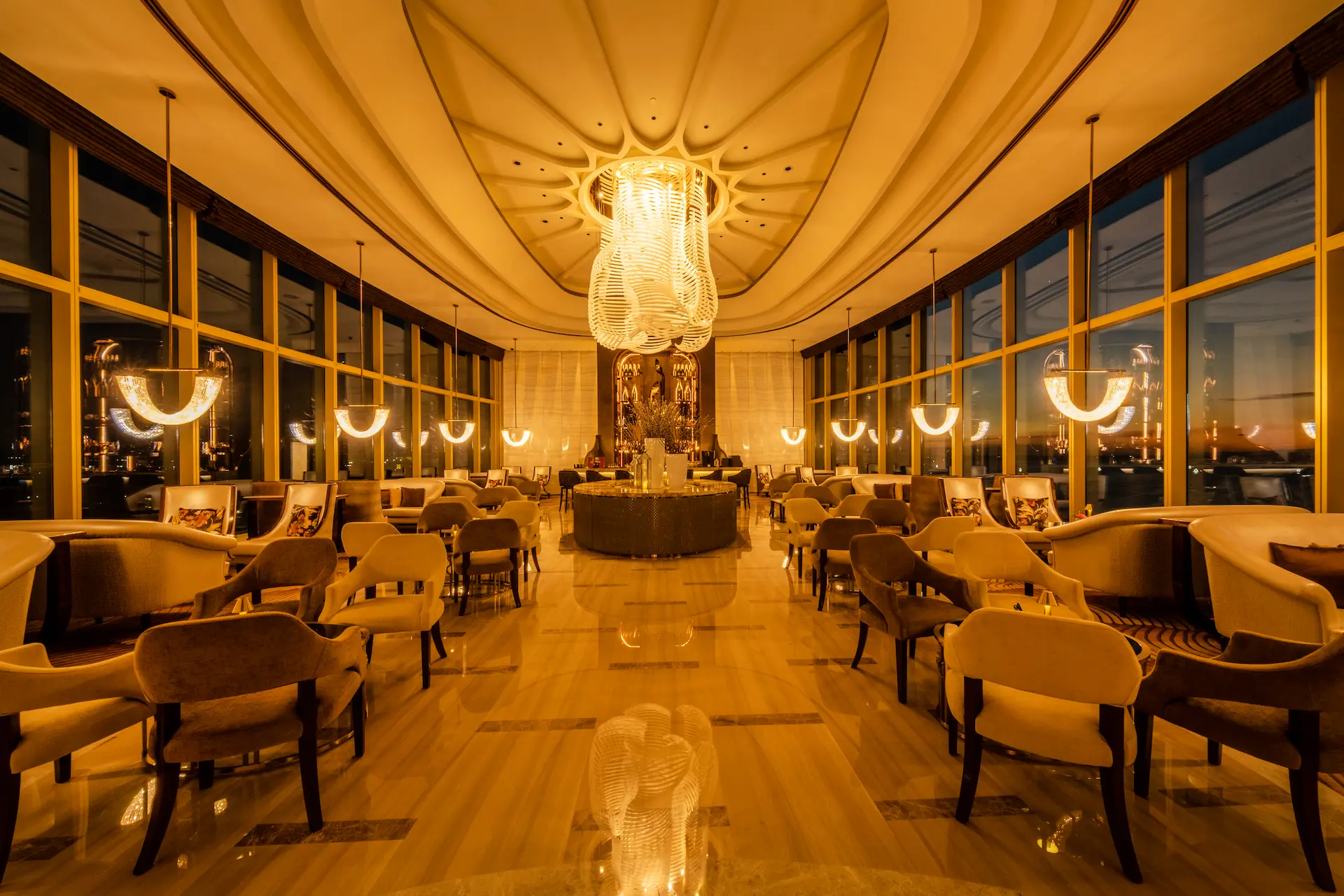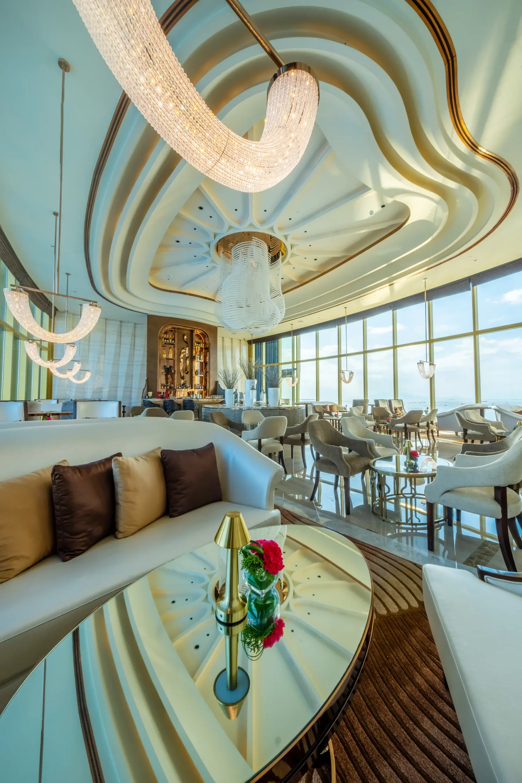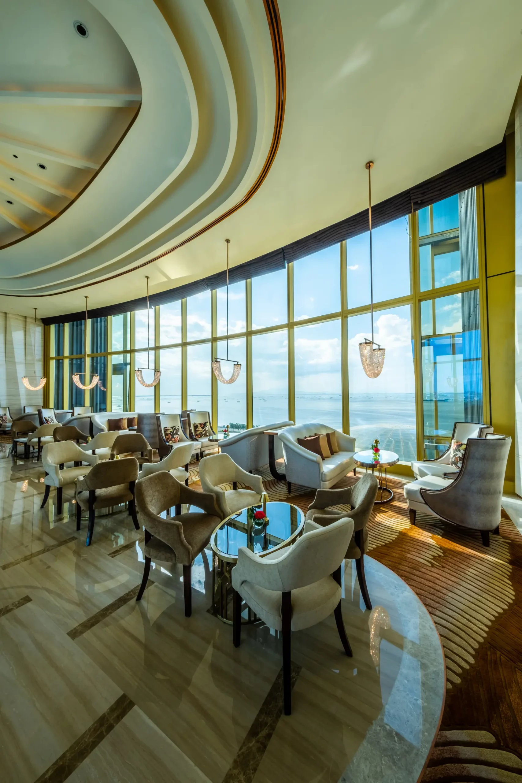 チェアマンズラウンジは、舌の肥えた人だけが楽しめる贅沢な空間で、The Fountain とマニラ湾の壮大な眺望、厳選されたバースナックや厳選されたドリンクリストが楽しめる。