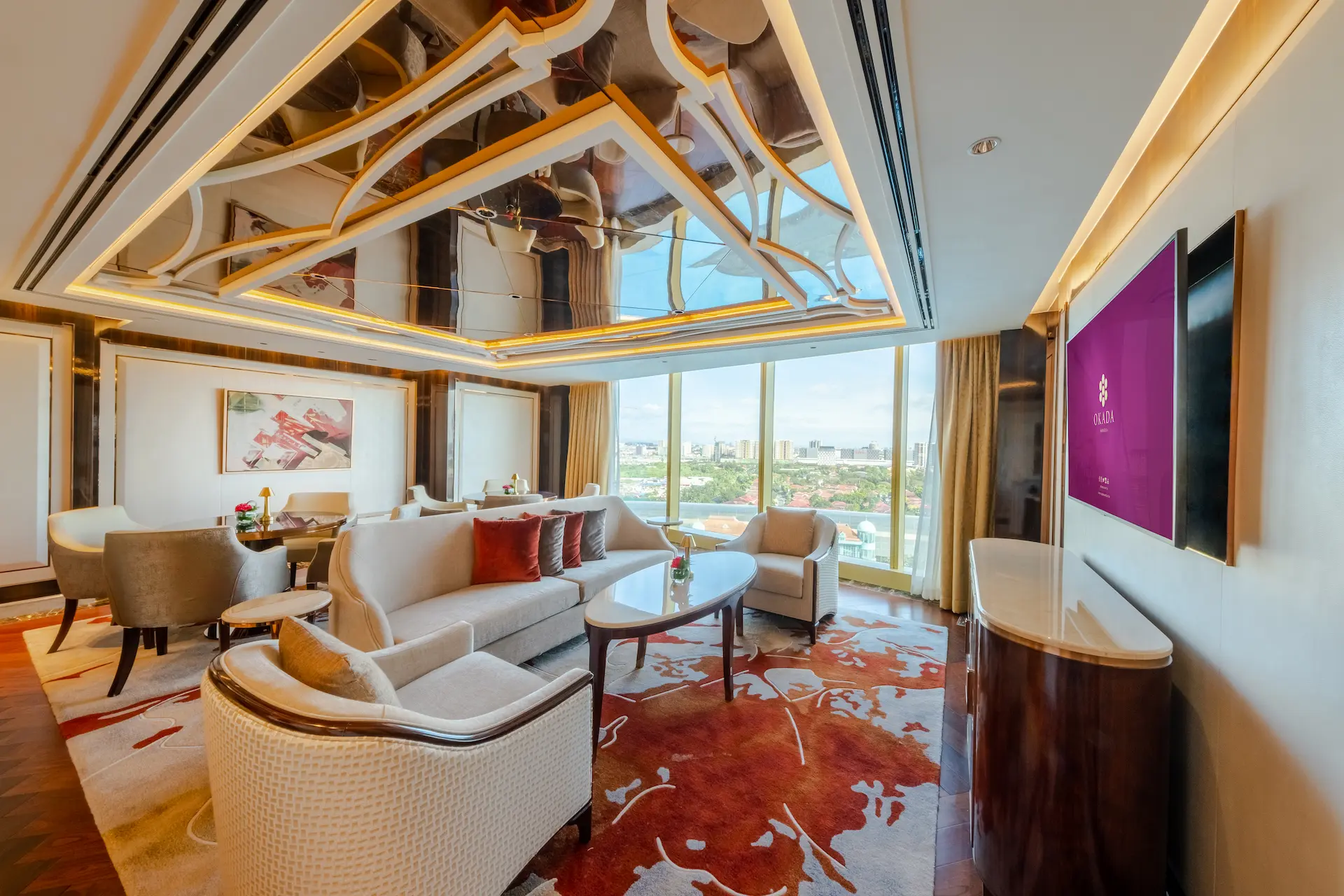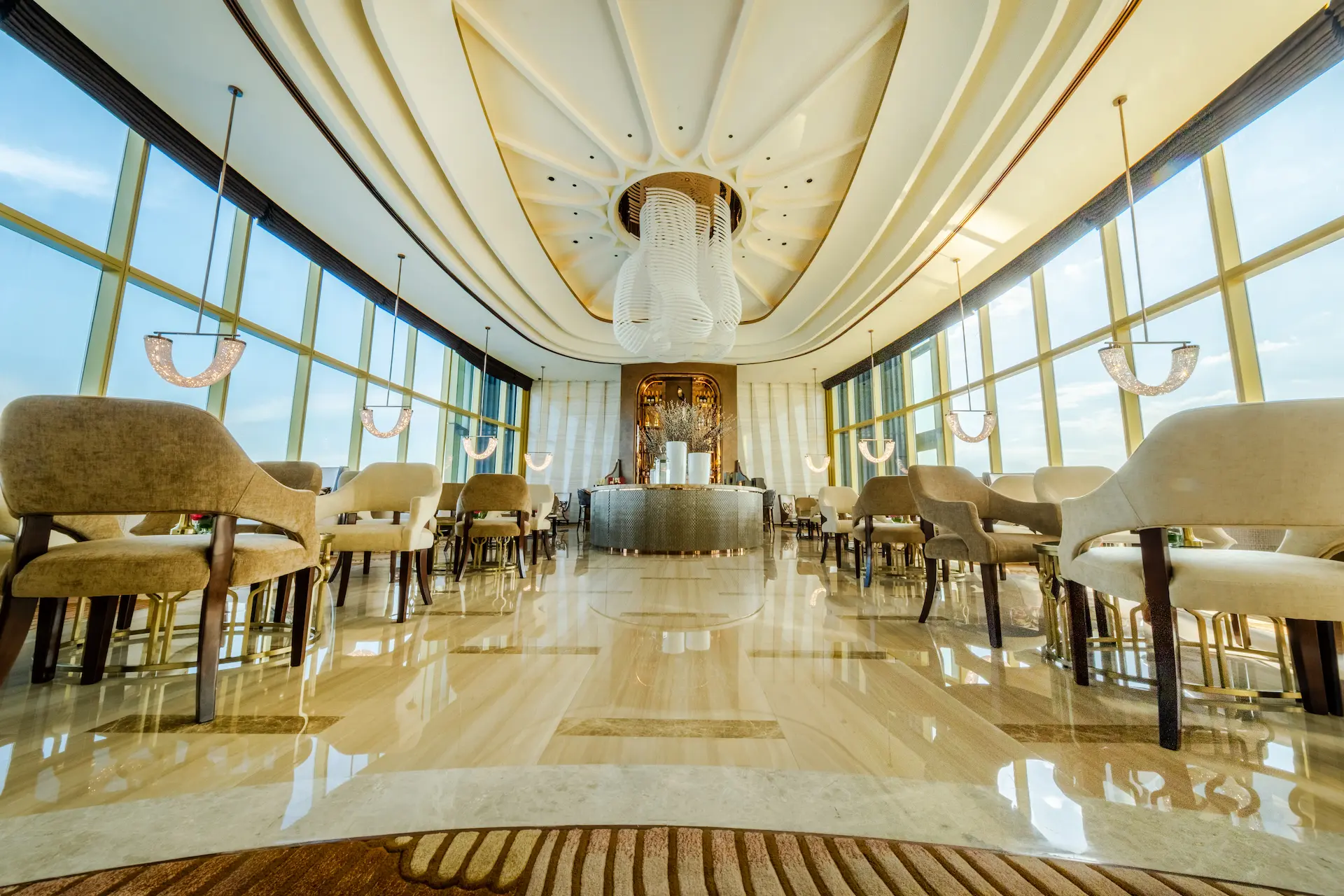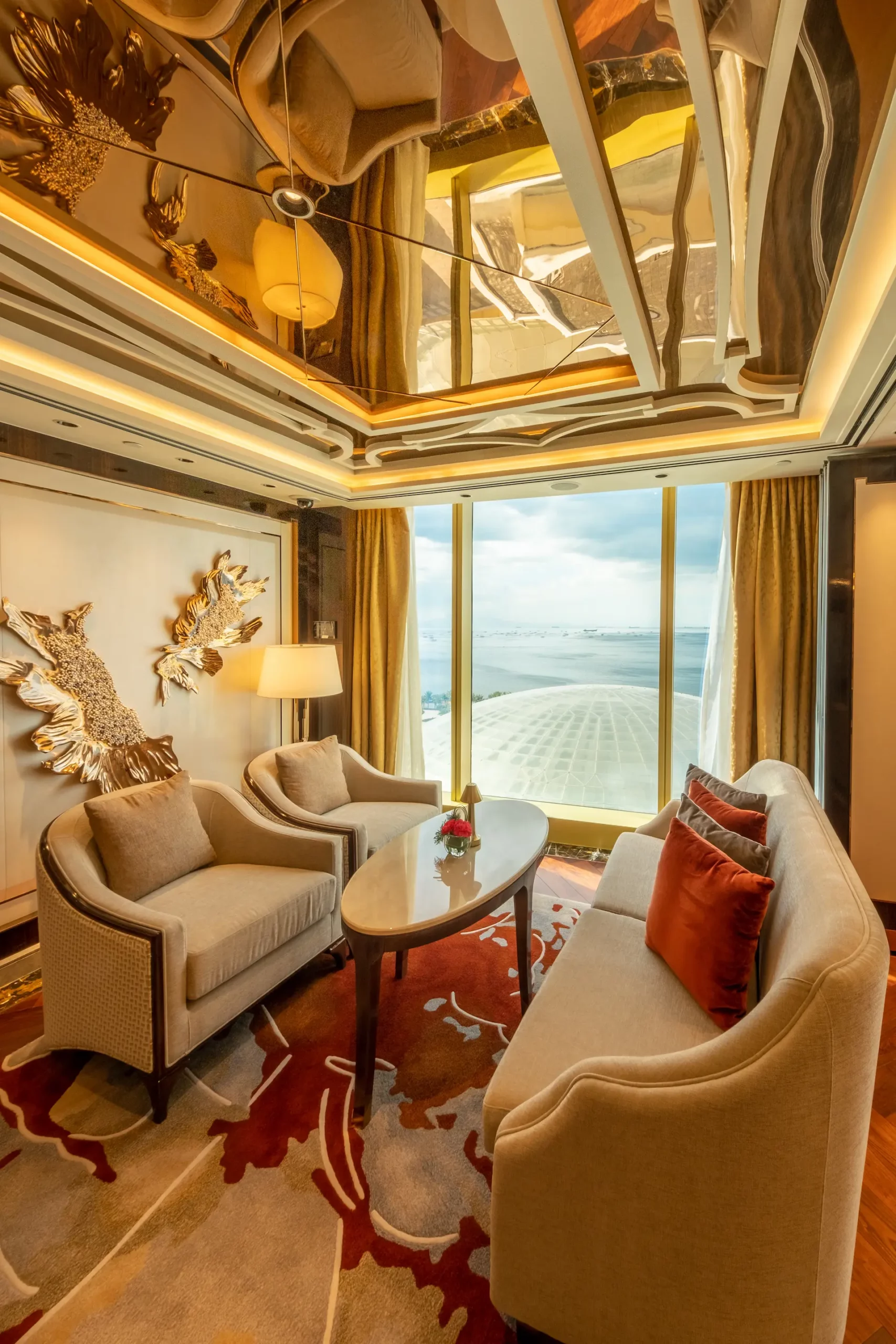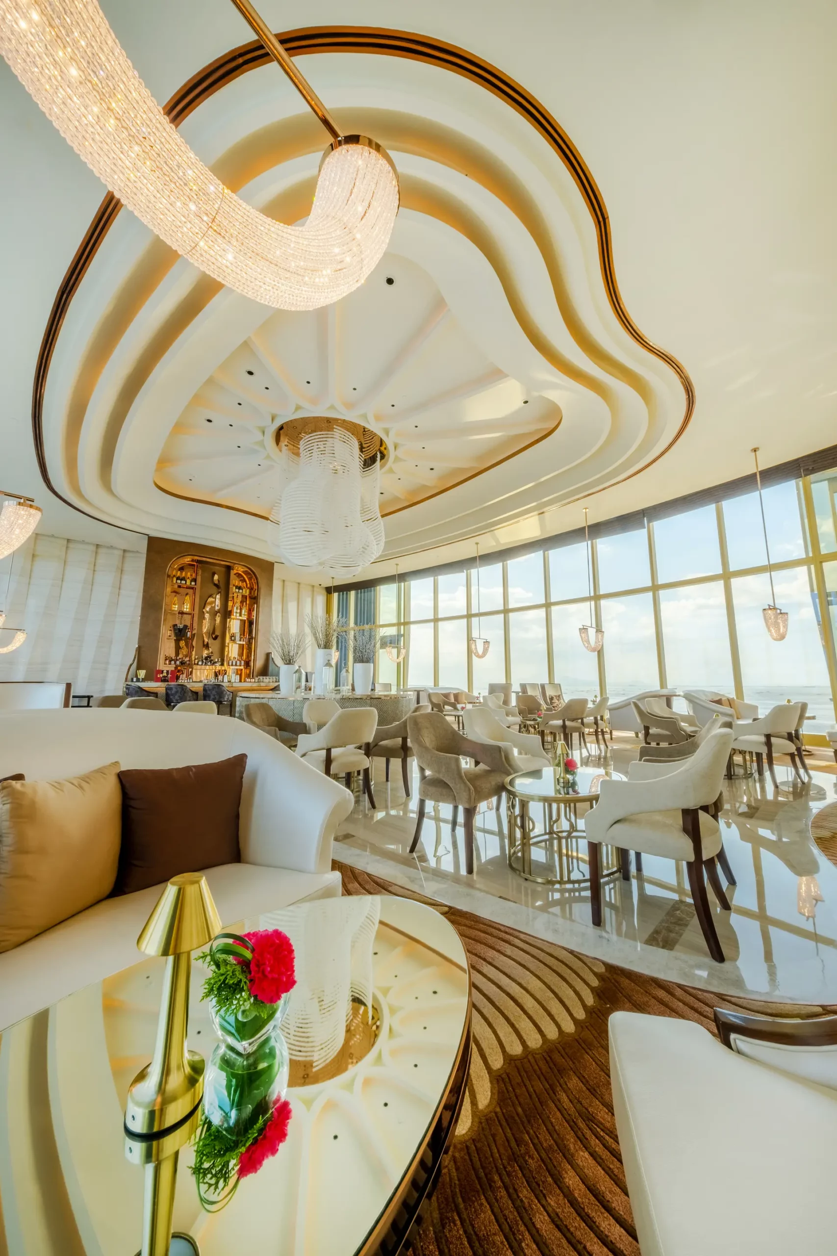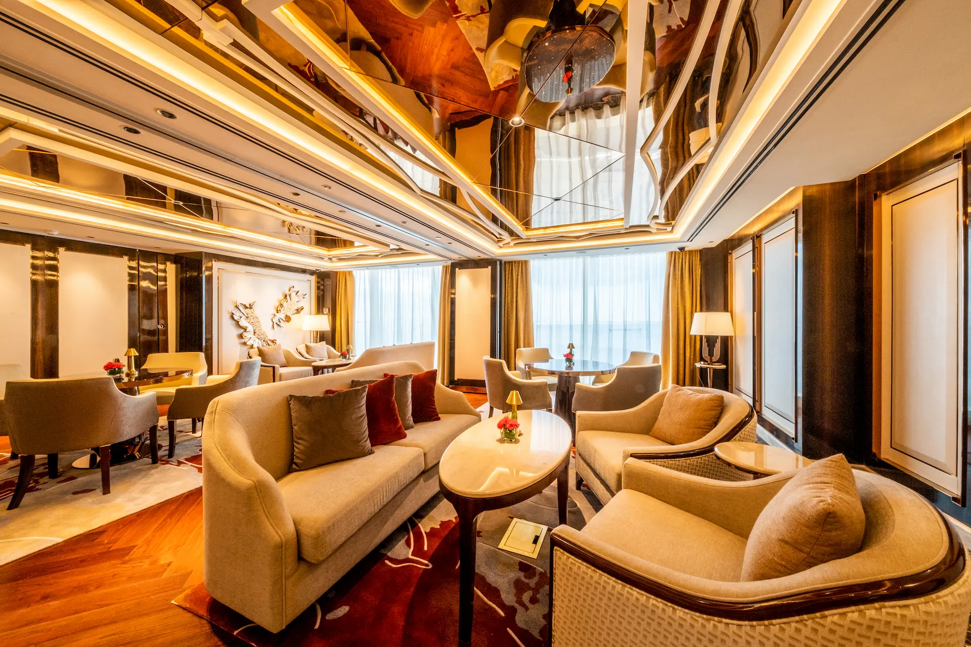 チェアマンズラウンジは、舌の肥えた人だけが楽しめる贅沢な空間で、The Fountain とマニラ湾の壮大な眺望、厳選されたバースナックや厳選されたドリンクリストが楽しめる。