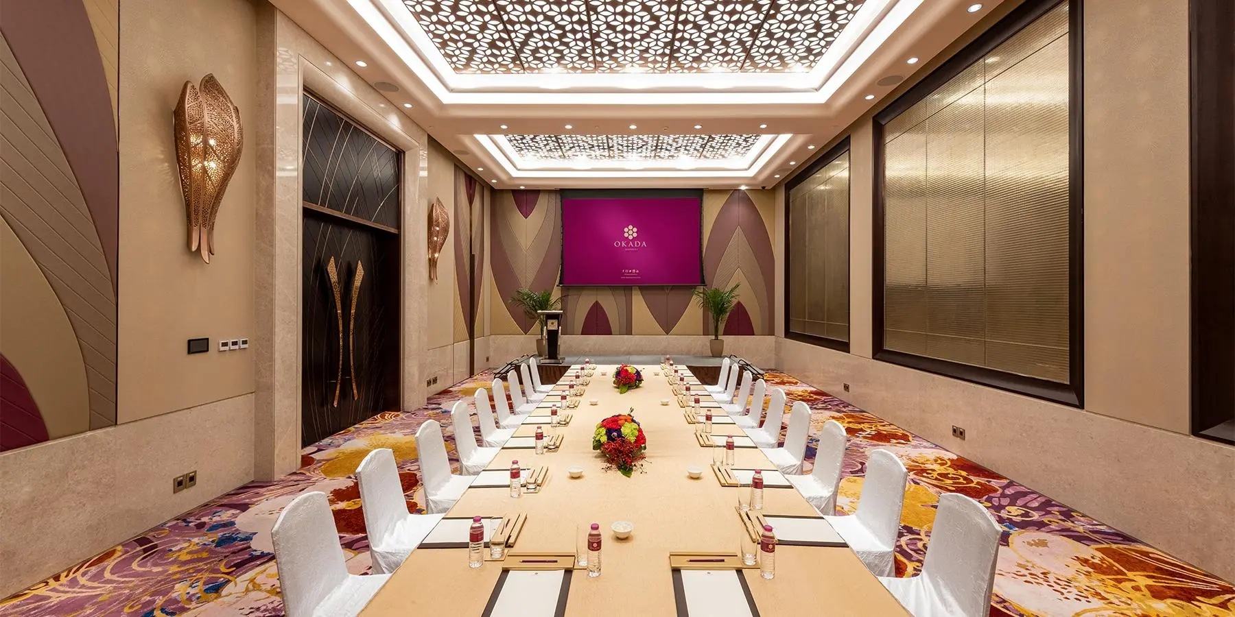 オカダ・マニラ コーラルウィングとパールウィングにある広々としたミーティングルームは、一流のマルチメディア機器とエレガントなインテリアが特徴です。