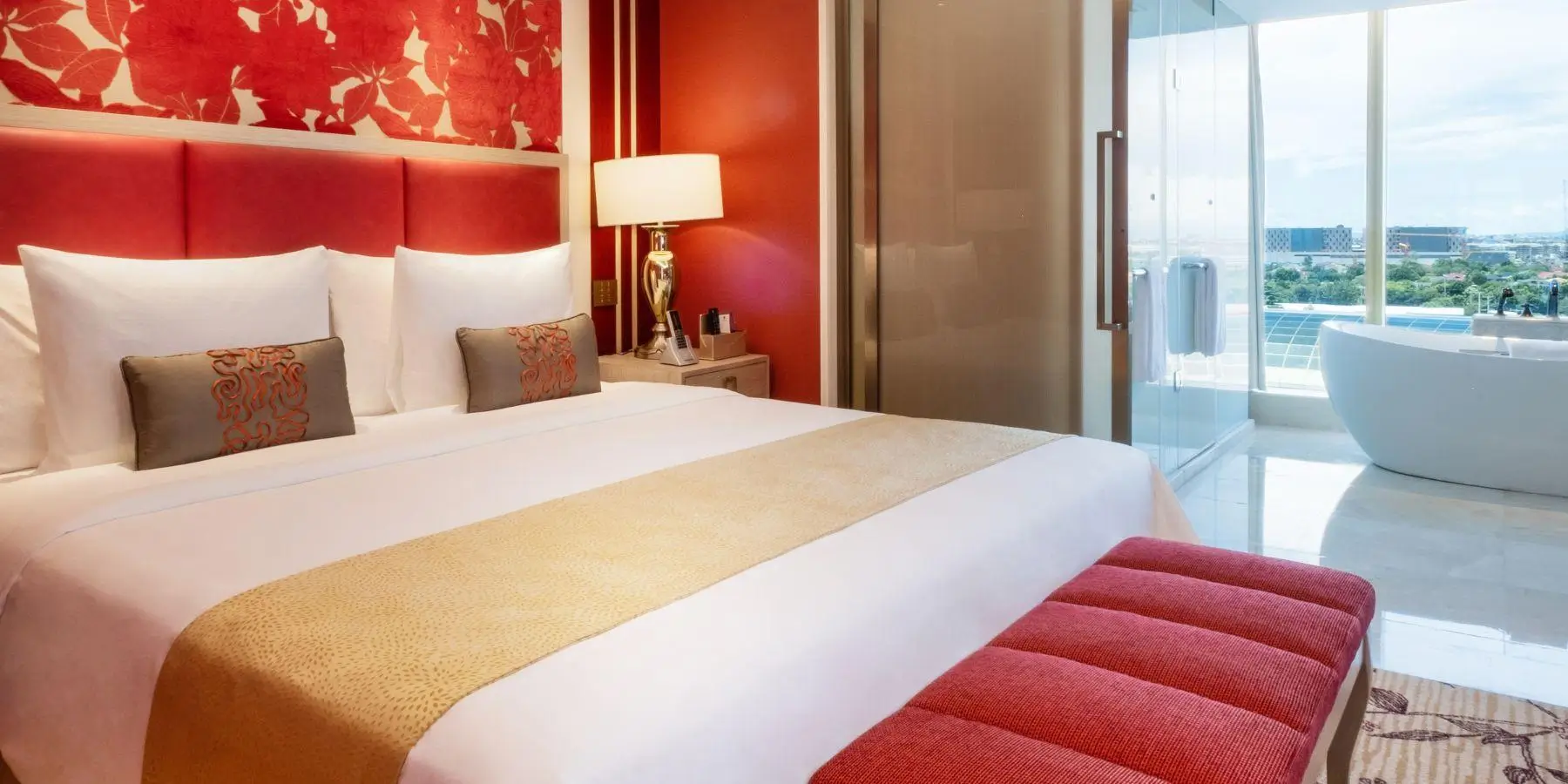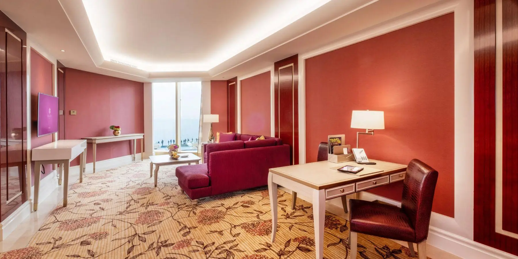 お客様のお好みに合わせて精巧にデザインされたジュニア・スイートは、極上のご滞在をお約束します。100~150平方メートルの広さを誇るこのスイートは、快適なリビングスペースと人間工学に基づいた書斎エリアを備えています。シーリー社製のマットレスを備えたキングサイズベッドが安らかな夜をお約束し、レインシャワーとデザイナーズアメニティを備えたプライベートバスルームが贅沢な隠れ家を演出します。最高級のセレクションを取り揃えたミニバーとネスプレッソマシンがあり、お好きなときにお好きなコーヒーをお楽しみいただけます。