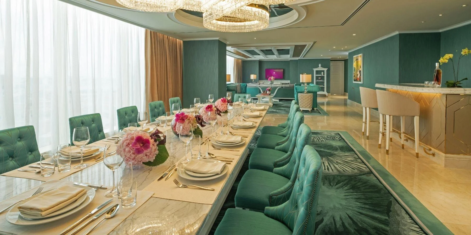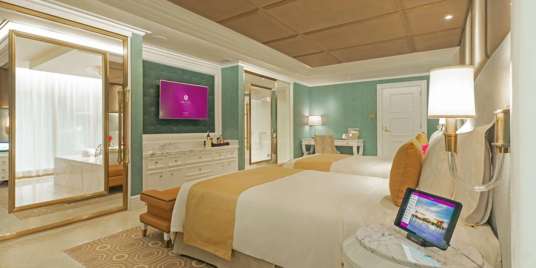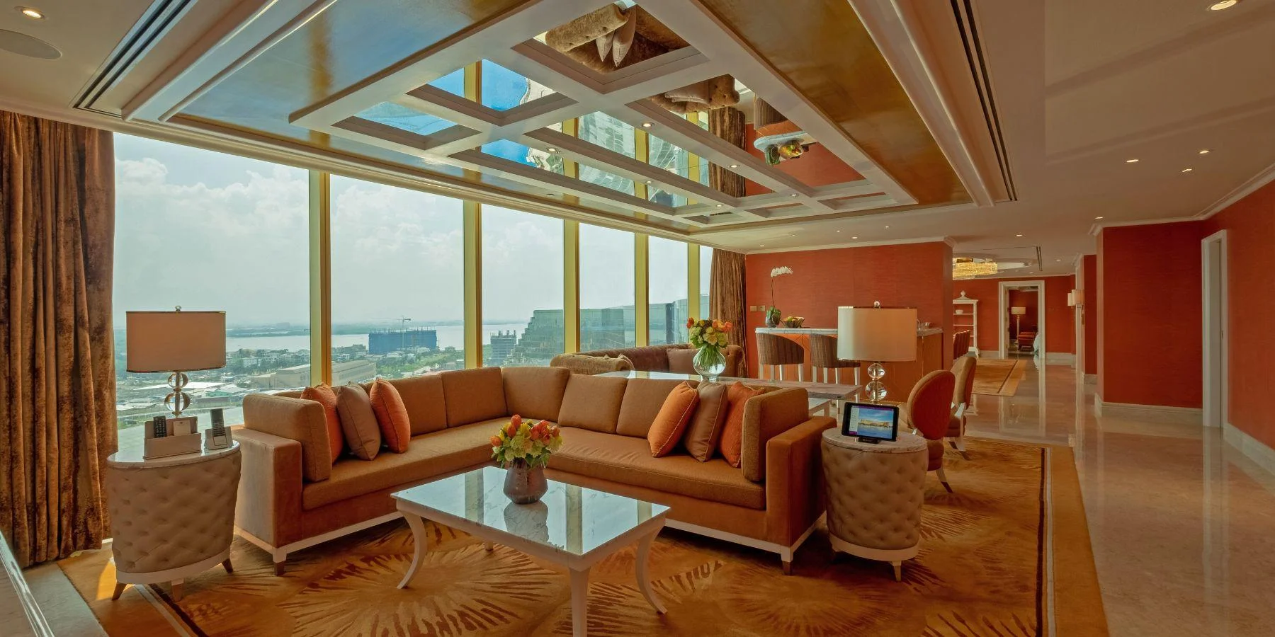 プレジデンシャル・スイートでは、あらゆる要素がその特徴的なテーマに忠実で、ゲストはオカダ・マニラ 、本来の楽しみ方を体験することができる。広々としたリビング&ダイニングエリア、プライベートバー、プライベートマッサージルームを備えた420㎡の2ベッドルームスイートで、ご自宅のようにおくつろぎいただけます。専用のバトラールーム、ナニールーム、パントリー、専用エレベーターまで完備。ネスプレッソのマシンで、朝は完璧なコーヒーで始まります。羽毛ベッド、リヴォルタ・カルミニャーニのイタリア製リネン、インテリジェント・トイレとジェットバスを備えた広々としたバスルーム、ロベルト・カヴァリのアメニティなど、細部にまでこだわった新しいレベルの快適さをお届けします。