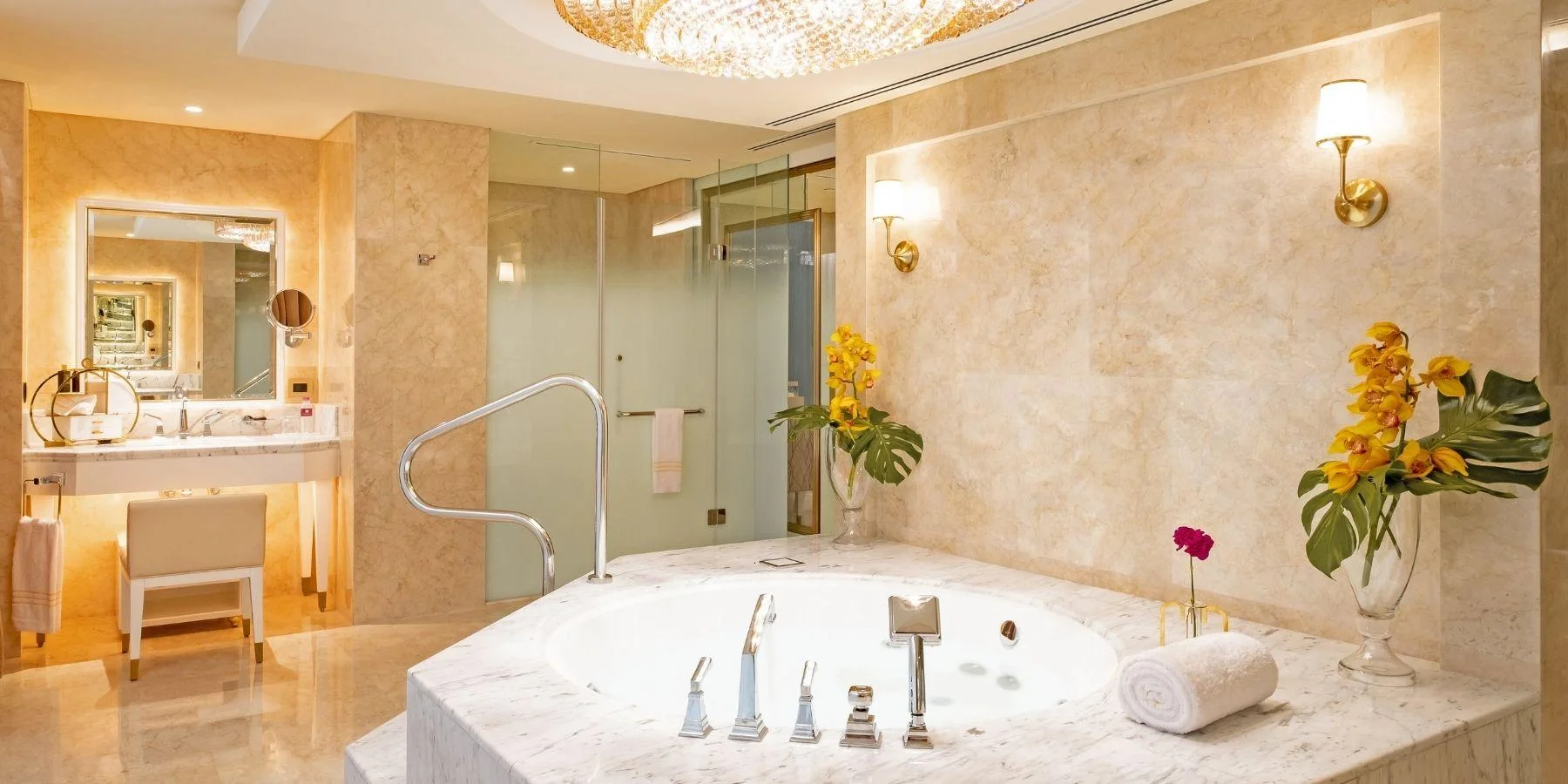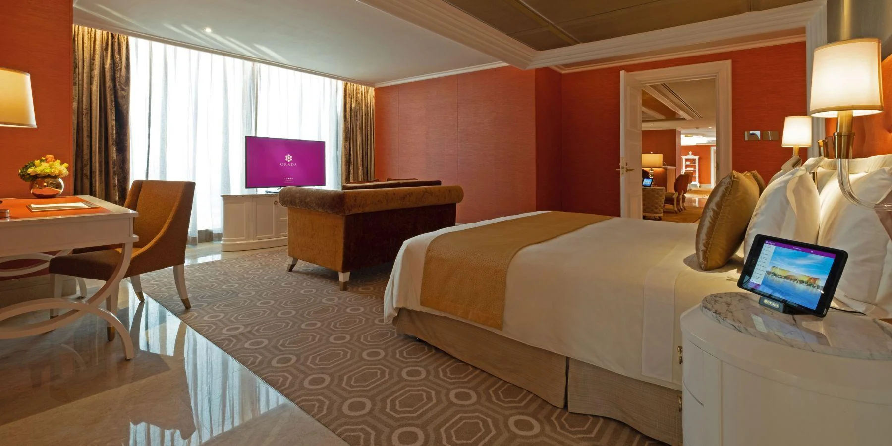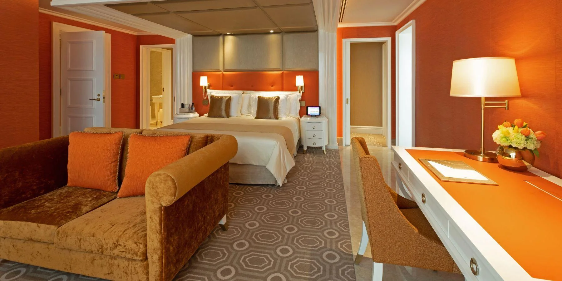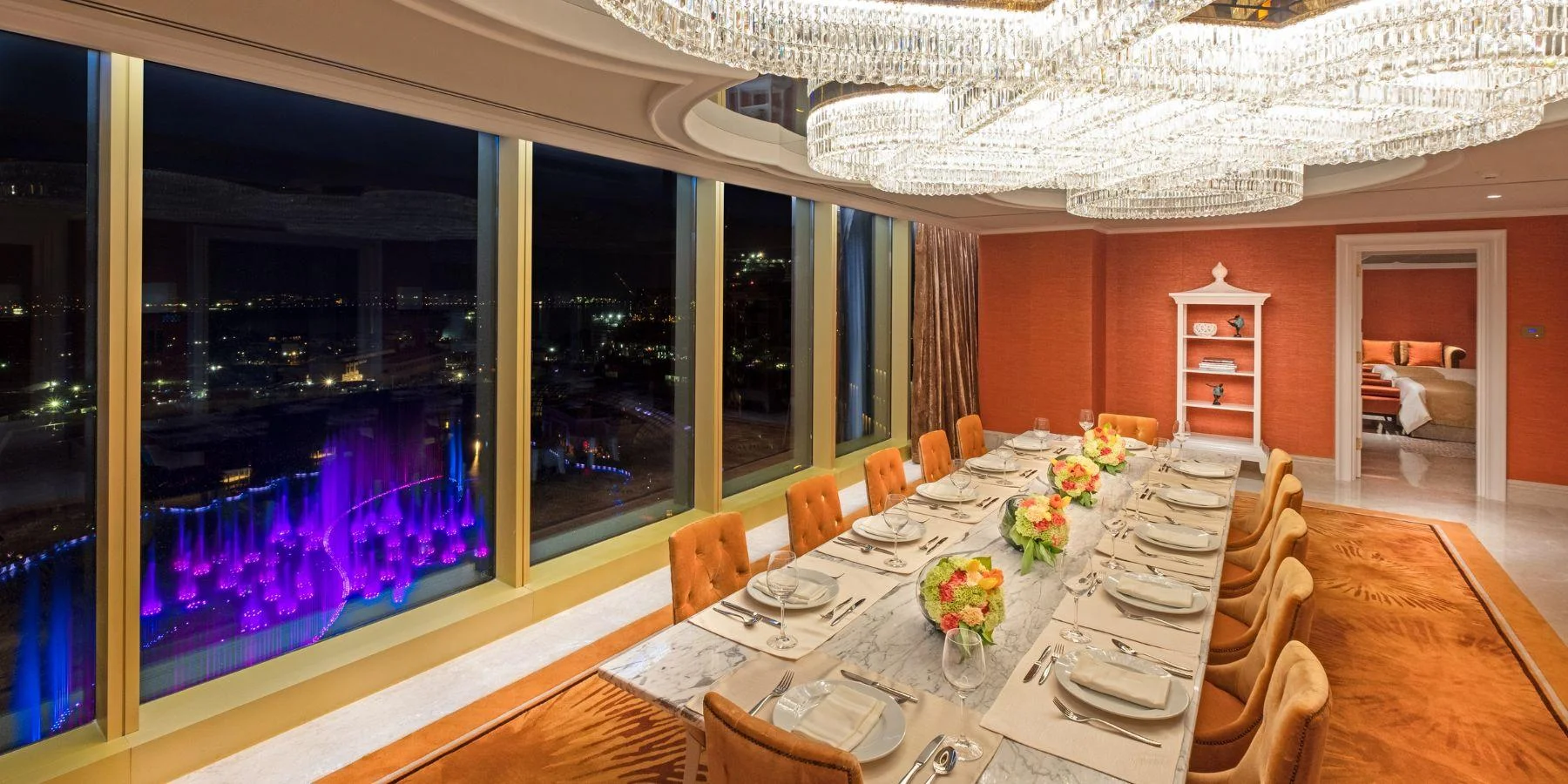 プレジデンシャル・スイートでは、あらゆる要素がその特徴的なテーマに忠実で、ゲストはオカダ・マニラ 、本来の楽しみ方を体験することができる。広々としたリビング&ダイニングエリア、プライベートバー、プライベートマッサージルームを備えた420㎡の2ベッドルームスイートで、ご自宅のようにおくつろぎいただけます。専用のバトラールーム、ナニールーム、パントリー、専用エレベーターまで完備。ネスプレッソのマシンで、朝は完璧なコーヒーで始まります。羽毛ベッド、リヴォルタ・カルミニャーニのイタリア製リネン、インテリジェント・トイレとジェットバスを備えた広々としたバスルーム、ロベルト・カヴァリのアメニティなど、細部にまでこだわった新しいレベルの快適さをお届けします。