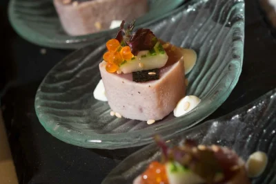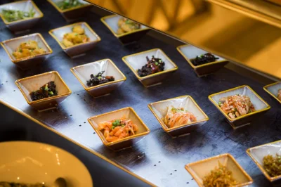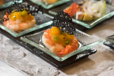 日本料理台整齐地分为两大区域。冷餐区陈列着丰富的寿司、生鱼片和卷饼,均由厨师精心制作而成。在热食区,客人可以品尝到新鲜制作的天妇罗,与传统的味噌汤搭配在一起再合适不过了。
