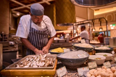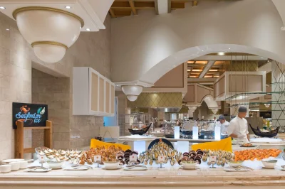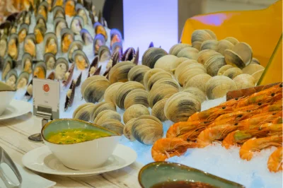 从本地和国际主食和特色美食到令人垂涎的新鲜海鲜,您可以尽情品尝各种美食佳肴。您还可以在甜品区品尝美味的甜点,满足对甜食的渴望。