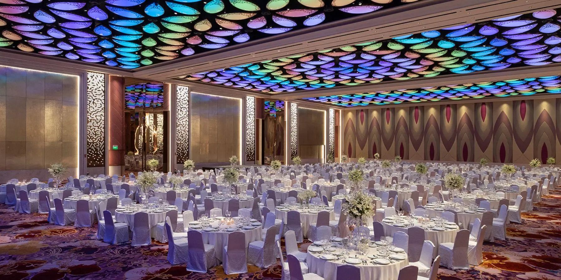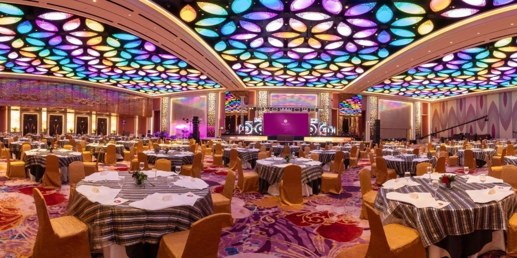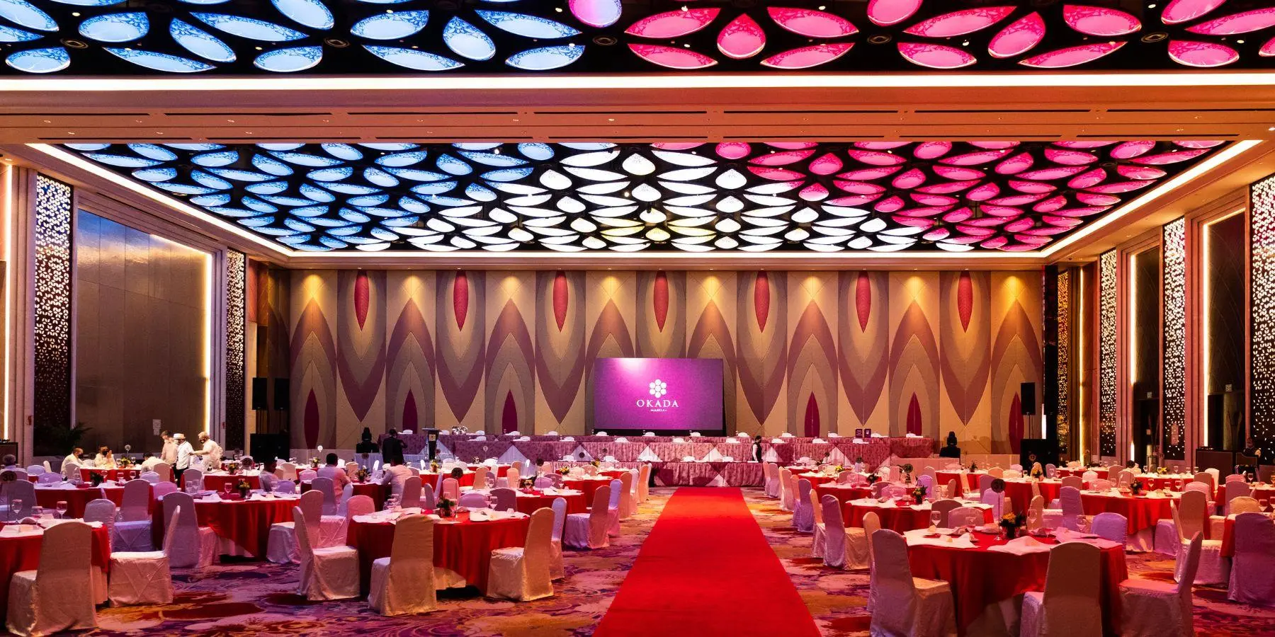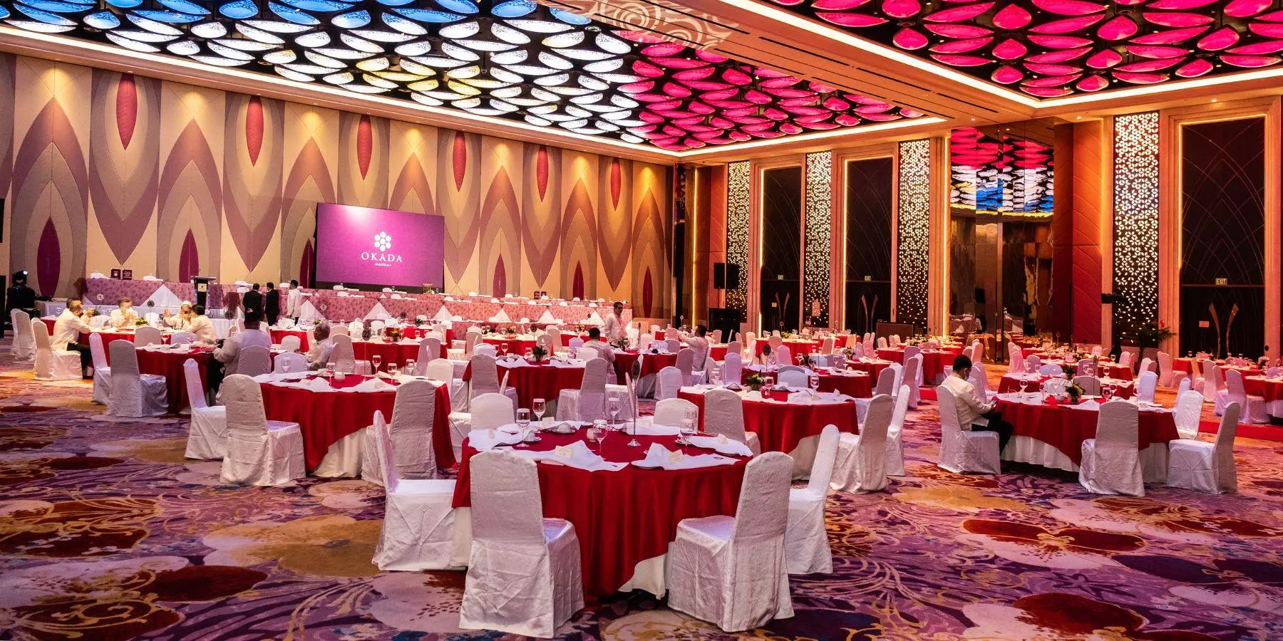 在Okada Manila 位于壮观的珊瑚翼的华丽大宴会厅内,难忘的时刻即将到来。 在这个环境优雅的非凡场所,您可以举办童话般的婚宴、梦幻般的首次亮相以及里程碑式的庆祝活动。大宴会厅拥有 1,649 平方米的宽敞奢华空间,并采用了独特的像素映射功能,使用了 1,700 道彩色 LED 灯光,令人目不暇接,留下深刻印象。大宴会厅可分为三个小宴会厅,以满足不同规模活动的需要。我们提供定制套餐,包括由屡获殊荣的烹饪团队精心策划的菜单选项、优质服务、便利设施和卓越的附加服务。